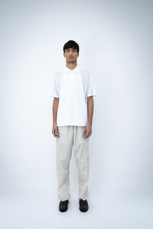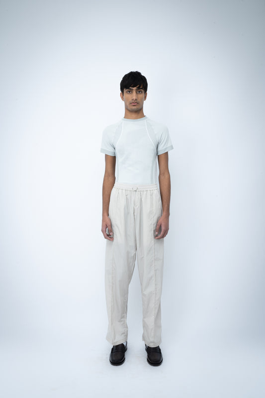 SS25 NYLON PINTUCK TROUSERS - STONE