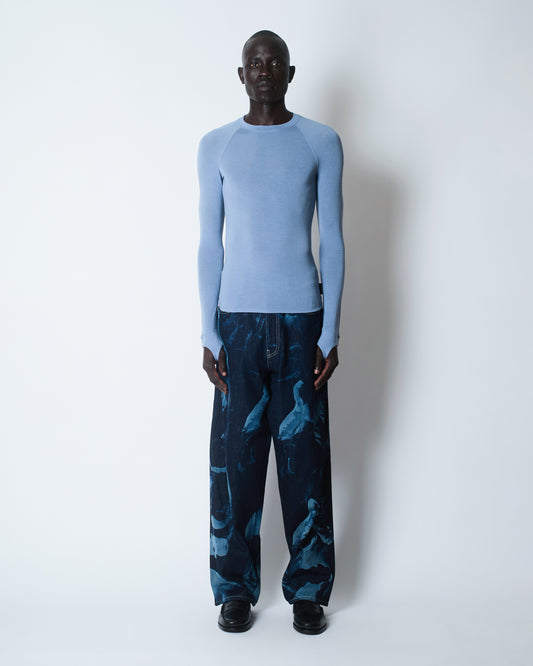 SHEER SNUG-FIT THUMBHOLE TOP TENCEL / WOOL BLUE