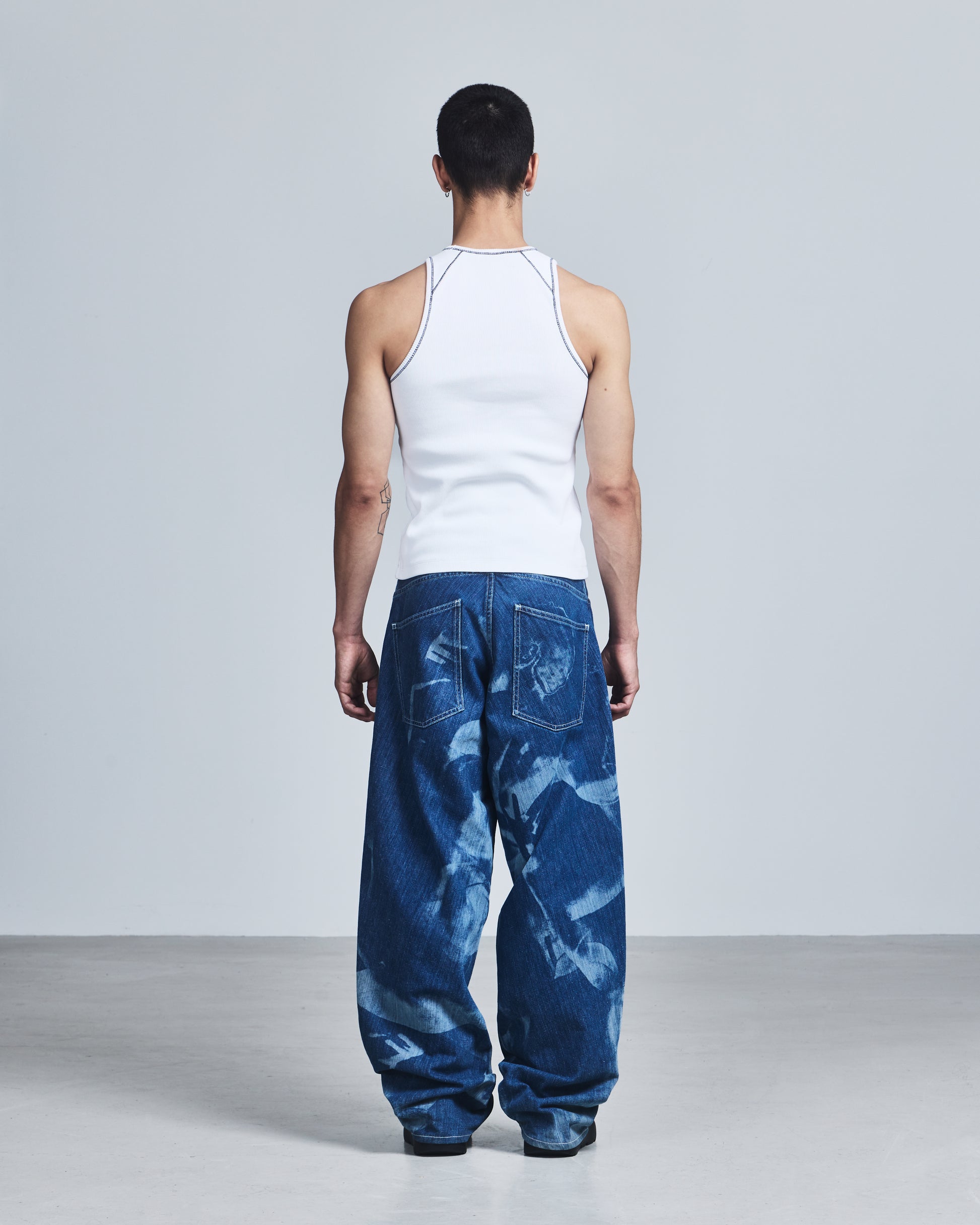 White ribbed cut vest defined by dynamic shoulder panneling and black coverstitching, engineered to move with the form. Finished with a zigzag-stitched brand motto label to the front. Crafted from a cotton-elastane blend for flexibility and comfort.