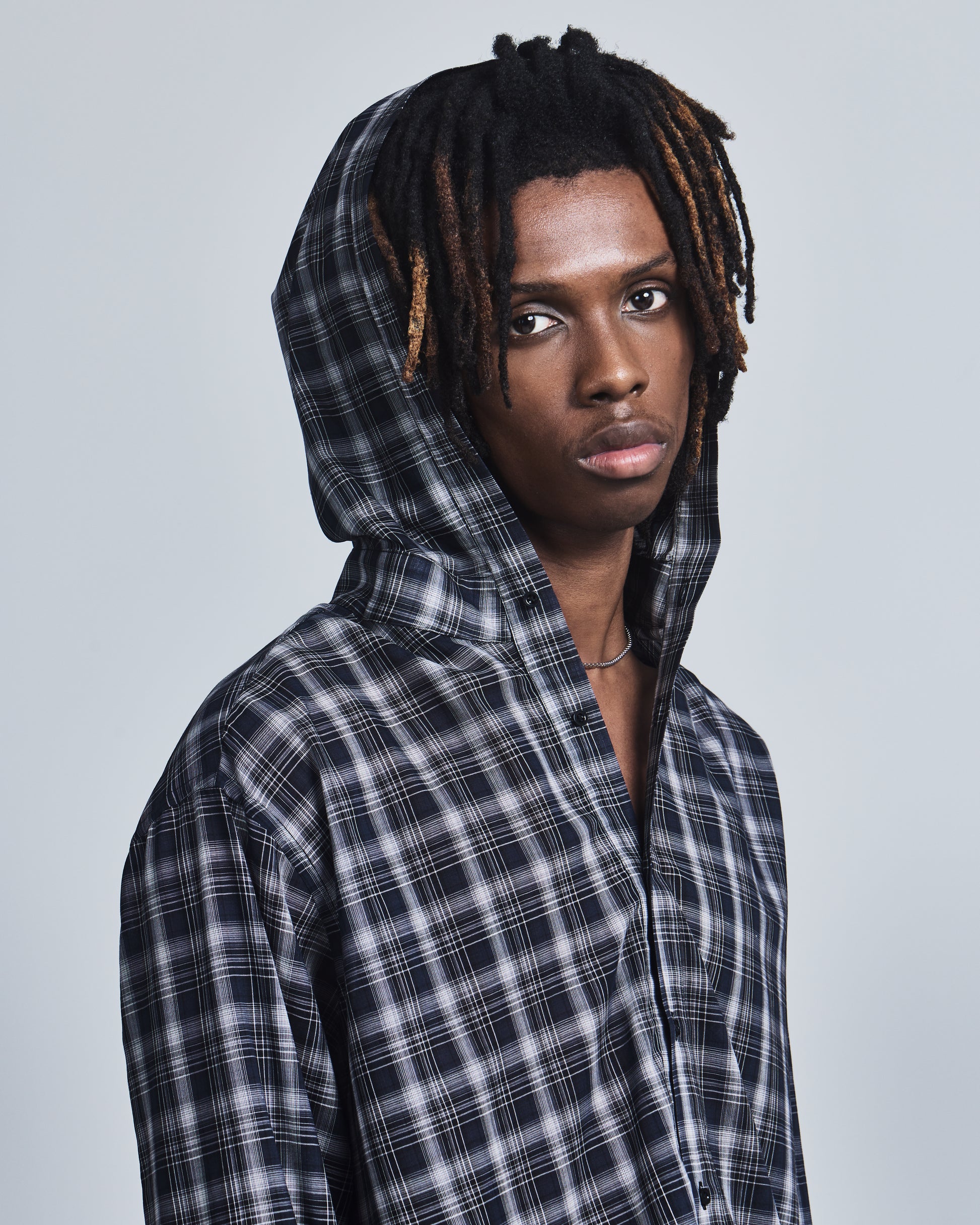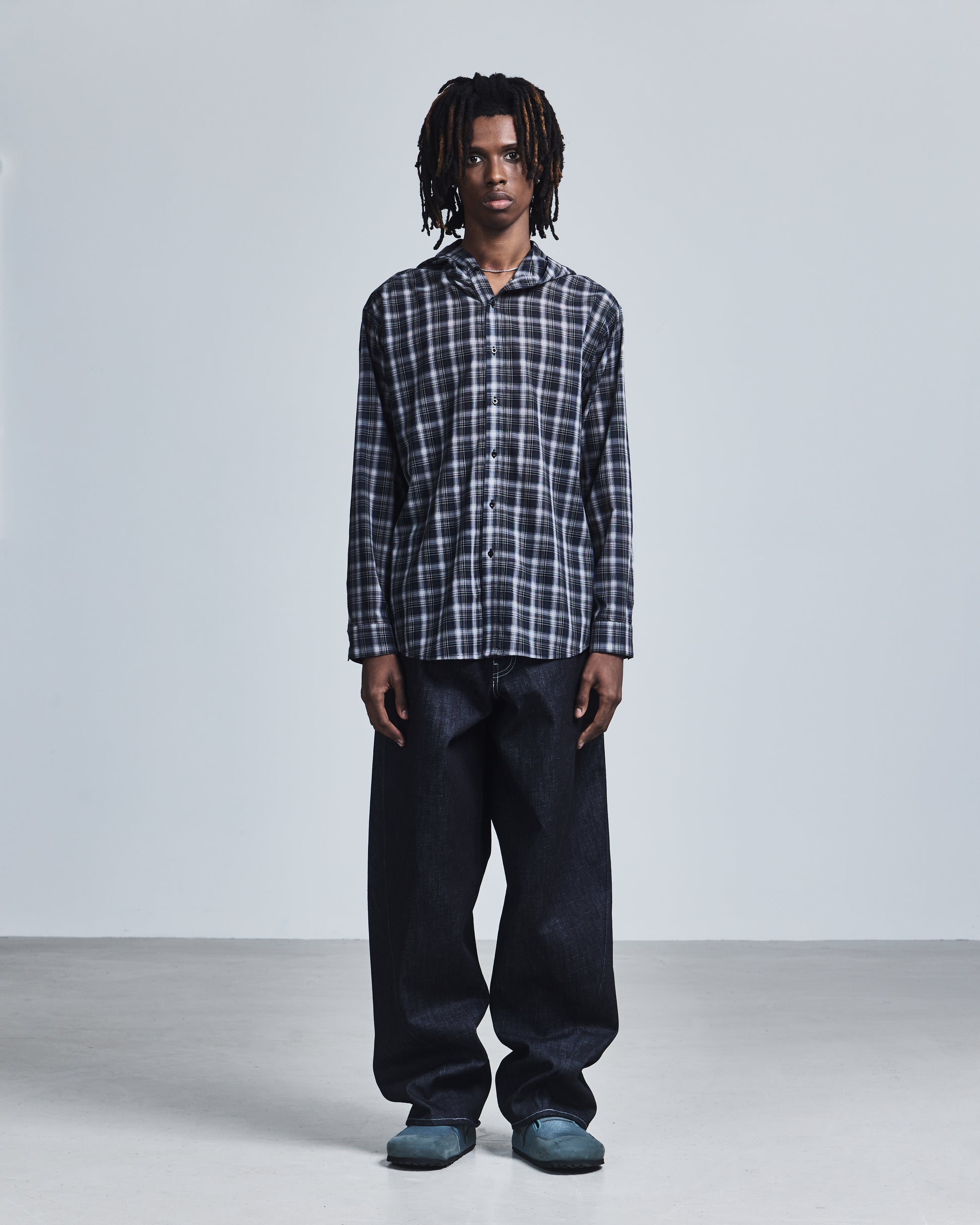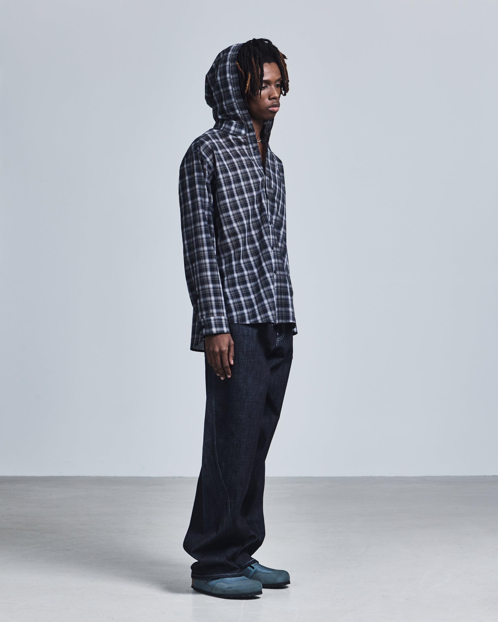 The signature Hooded Oxford Shirt in a breathable check fabric reinterprets classic tailoring with contemporary ease. Cut from lightweight yarn dyed wool recycled polyester the shirt features a back pleat for unrestricted movement and front buttons for adaptable styling. A hooded design blends functionality with a modern silhouette, creating a versatile shirt for refined, everyday wear.