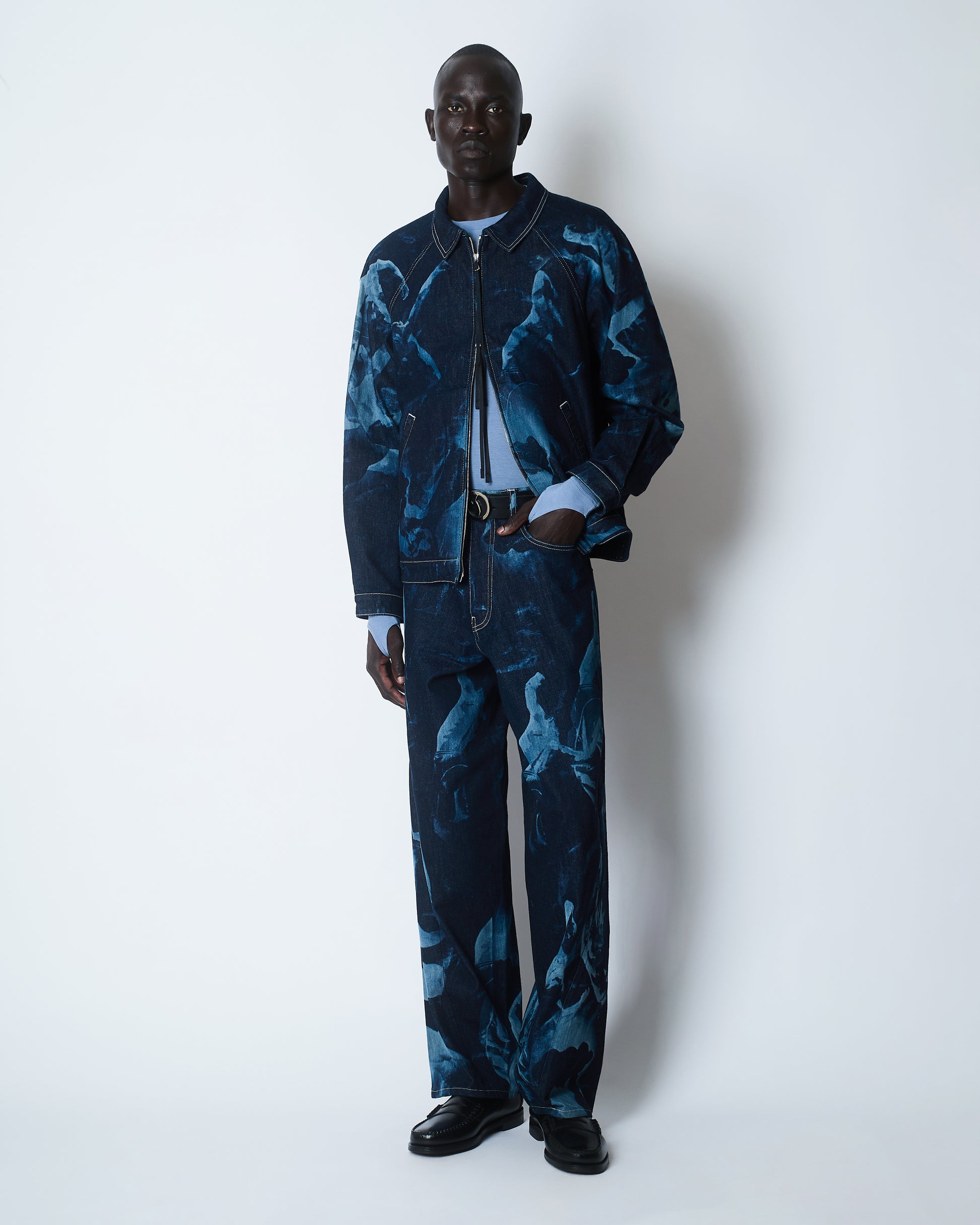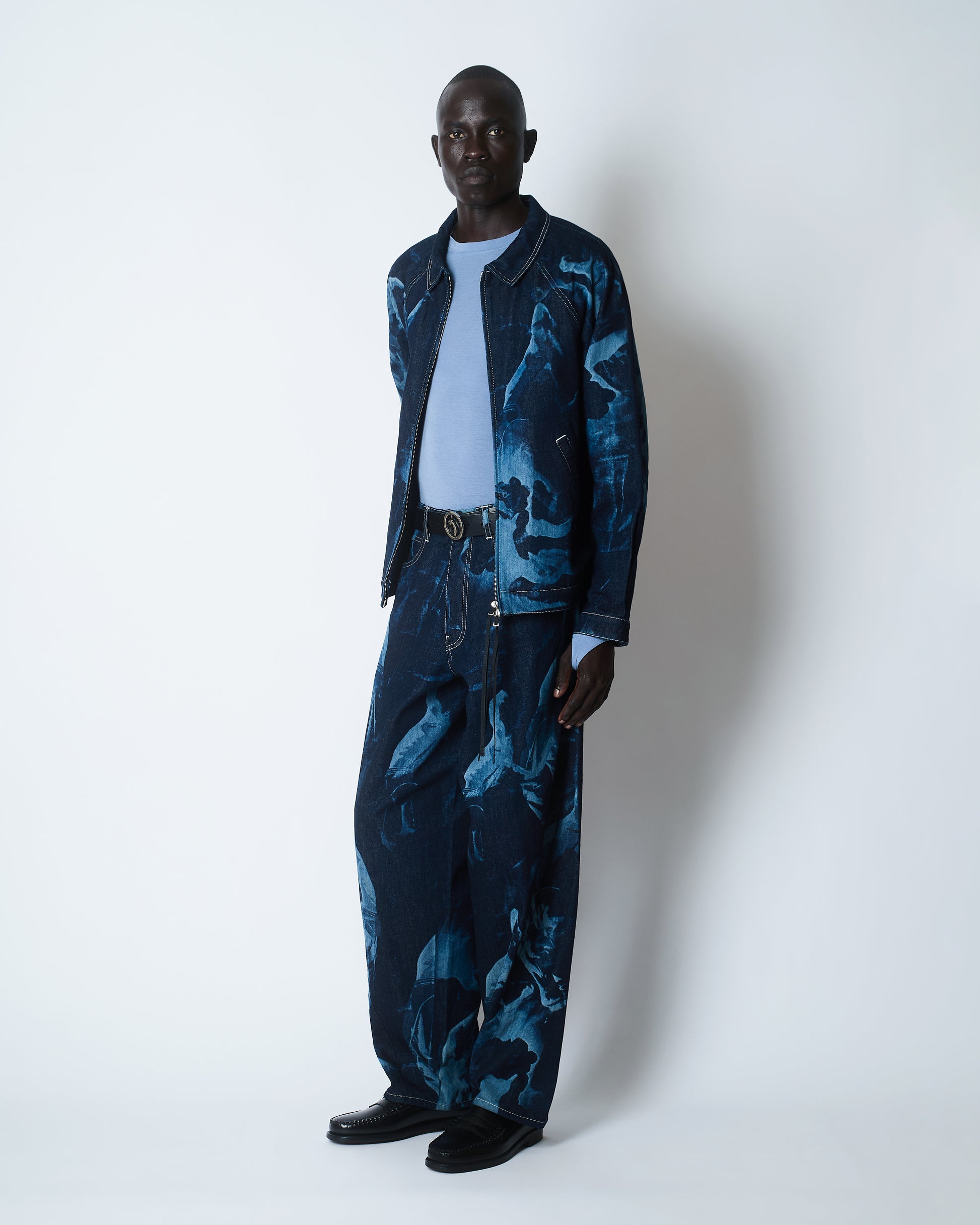 Cut from premium ISKO denim, Metamorphosis Work Jacket combines durability with innovative design. Featuring a laser-engraved moving body motif, this jacket reflects fluidity in motion. Its two-way zipper offers versatile wearability, allowing unrestricted movement without compromising style. Perfectly engineered for both function and contemporary aesthetics.