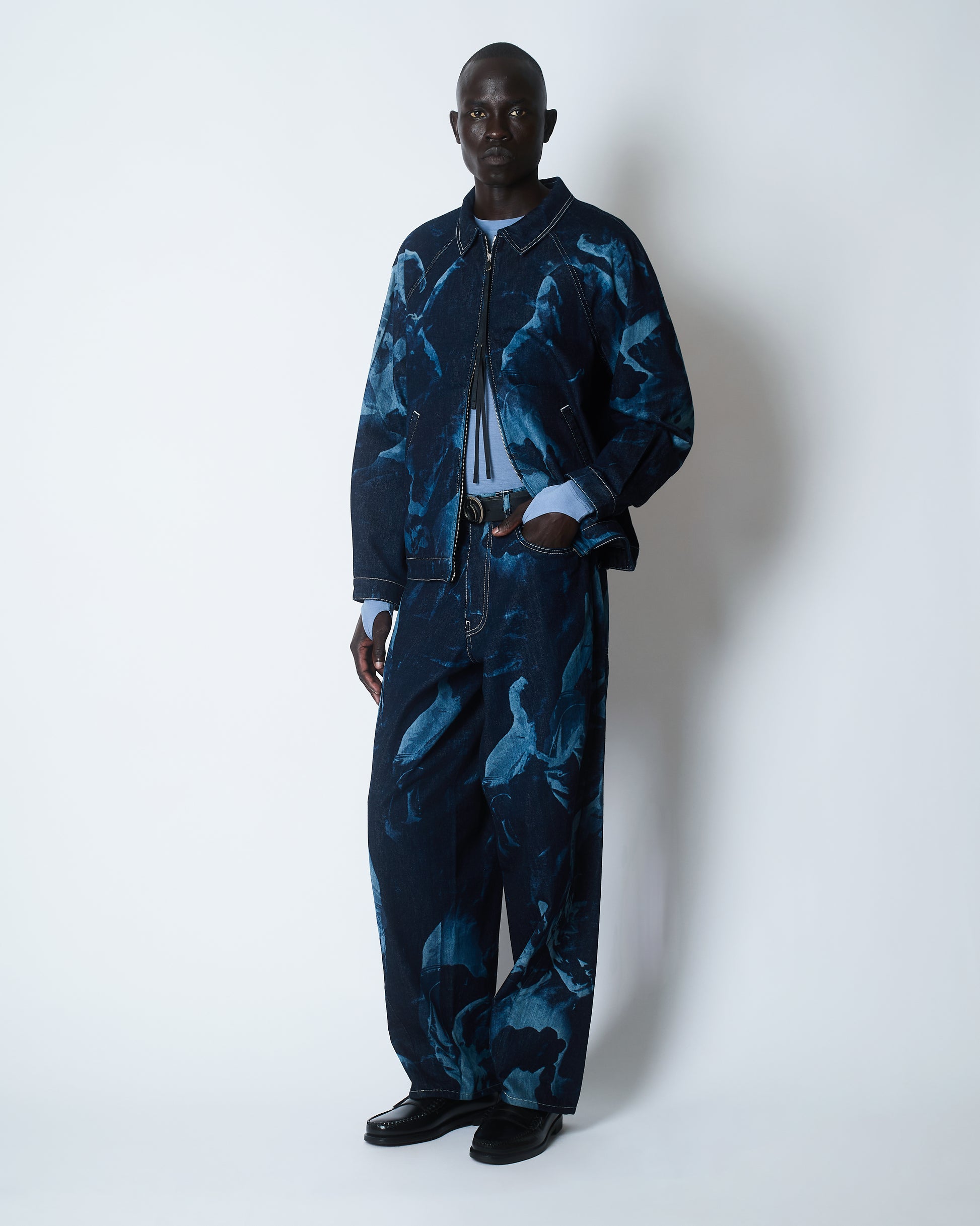 METAMORPHOSIS LASER ENGRAVED WORK JACKET DENIM INDIGO / LIGHT BLUE