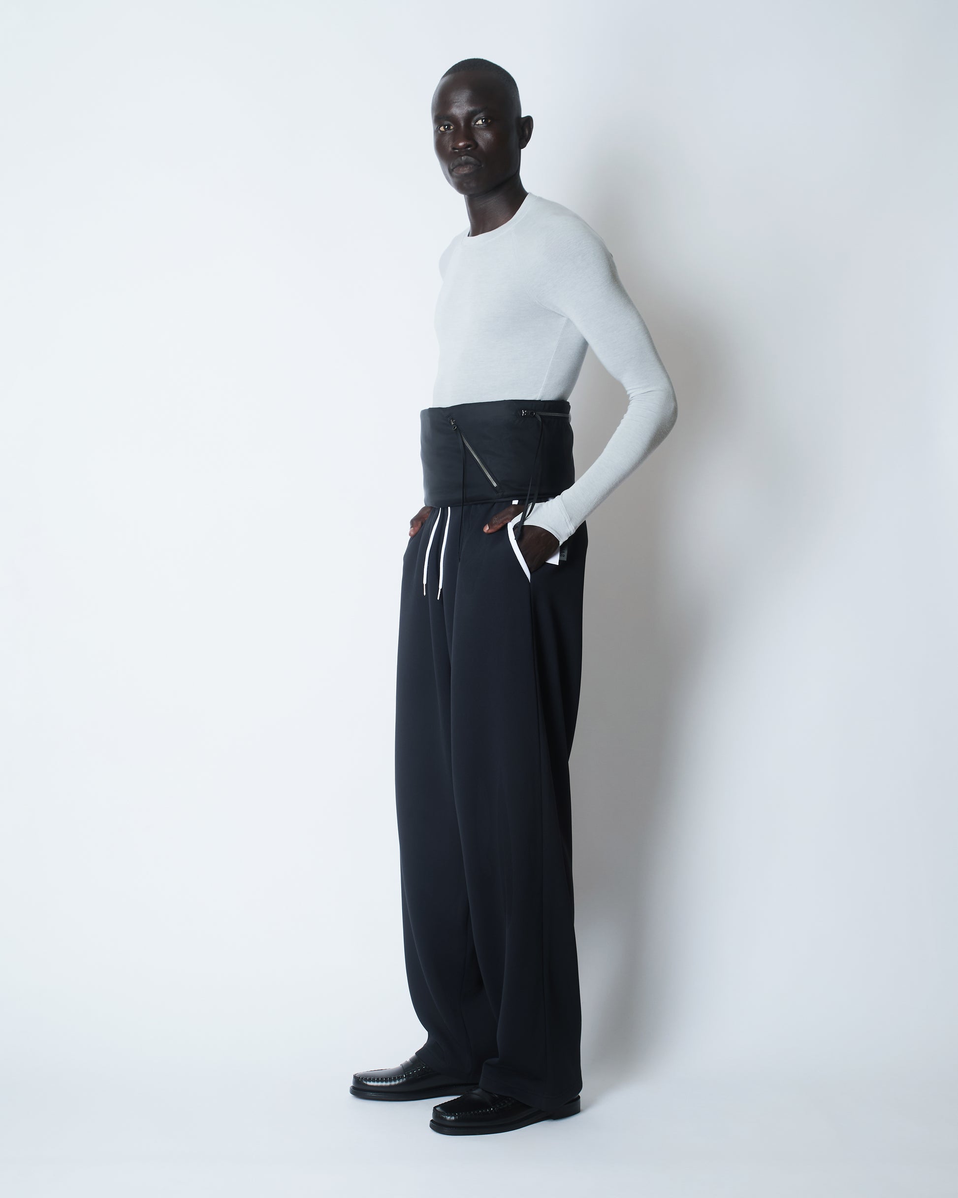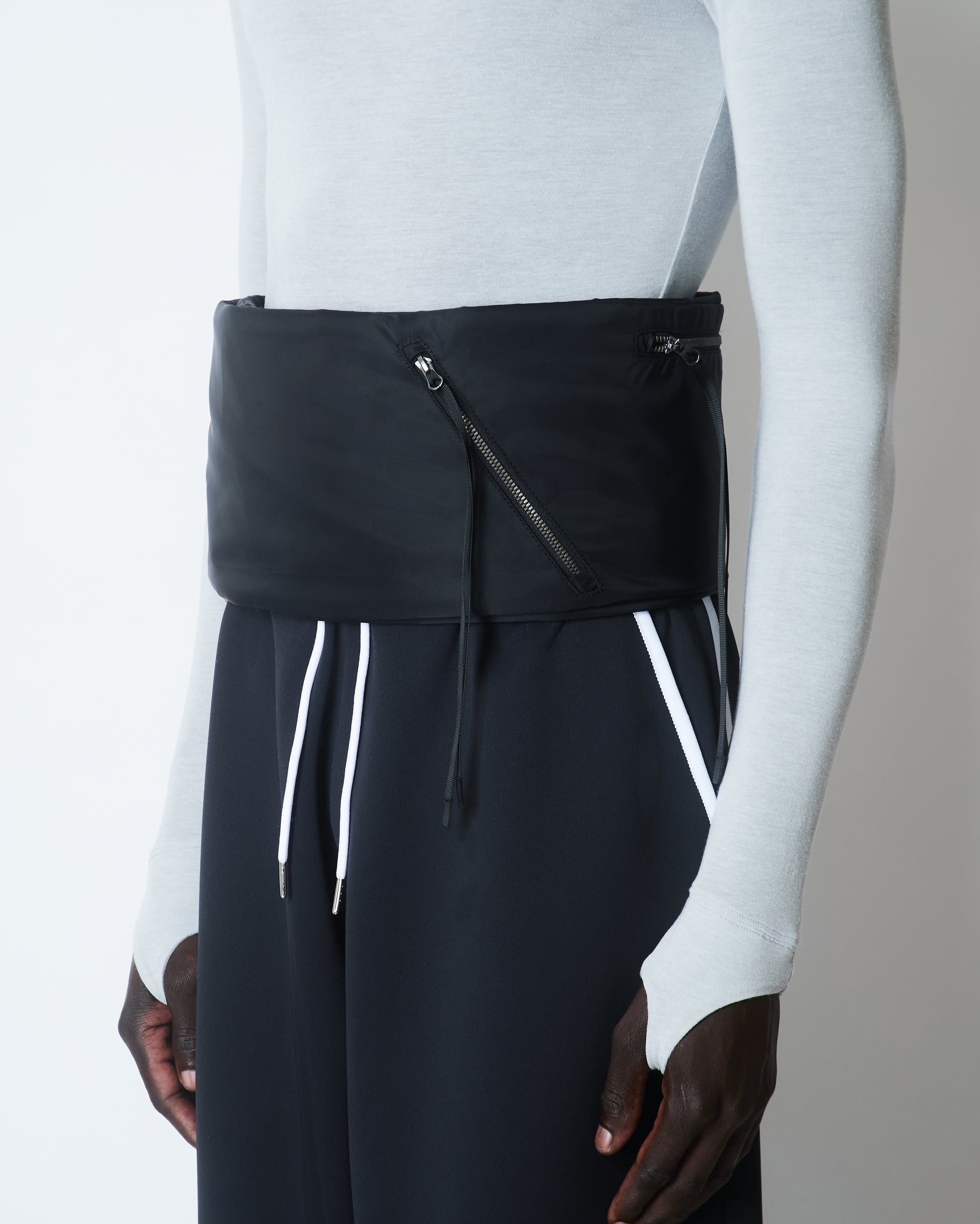 The Technical Padded Bag Scarf in black nylon is a versatile accessory inspired by the classic Cumberland, featured in Autumn Winter 25. Crafted from 100% GRS recycled nylon with PrimaLoft Gold insulation and a metal zip, it provides lightweight warmth and durability. Wear it around the neck, across the body, or at the waist to keep your essentials close and stay comfortable in cooler weather.